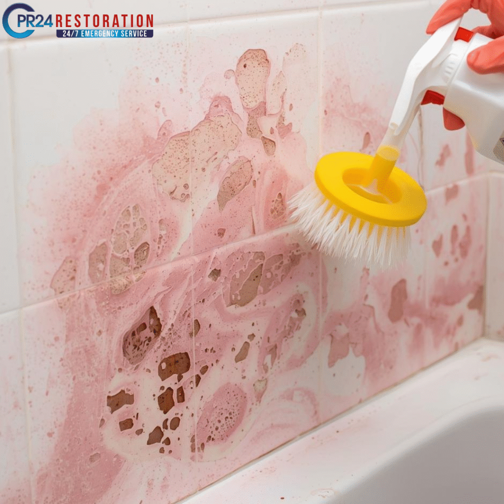 That pink mold you spotted in your Toronto home isn’t actually mold at all. The strange pink substance is a type of bacteria called Serratia marcescens. For effective pink mold removal, it’s important to address it promptly as it thrives in warm, moist places like your humidifier. A pinkish film has probably appeared in your shower or bathroom. Pink mold appears in showers and bathrooms across Toronto homes because these spaces create perfect breeding conditions. But this is more than just looks. Pink mold can cause health problems. This is especially true for people with weak immune systems, allergies, or asthma. Many homeowners ask if pink mold is dangerous. The answer is yes, it can harm you, especially if you have a vulnerable immune system. In this piece, we’ll explain why pink mold appears and help you spot it in your home’s different areas. You’ll learn effective removal techniques that work. We will share ways to prevent pink mold in your Toronto home. We will also help you know when to call for professional help. What Is Pink Mold and Why Does It Grow in Toronto Homes? That pink stuff growing in your bathroom isn’t actually mold at all. The rosy-colored buildup you’ll find in Toronto bathrooms comes from bacterial growth, specifically Serratia marcescens or Aureobasidium pullulans. This difference is vital to know how to treat and prevent it properly. What causes pink mold in humid environments Bacterial growth runs on specific conditions that often appear in residential bathrooms. When moisture levels climb above 60%, bacteria find their perfect breeding ground. Growth speeds up when temperatures hit between 68-86°F (20-30°C). These bacteria enjoy eating organic matter. This includes soap scum, skin cells, and leftover personal care products that collect on surfaces. Your bathroom becomes a bacteria magnet when it lacks proper airflow. Bathrooms without good exhaust fans or closed windows after showers give these bacteria the perfect home. Puddles of water sitting in shower corners, sink basins, or toilet bowls make the problem worse. Is pink mold dangerous to your health? Pink bacterial growth isn’t as toxic as black mold, but it can still harm your health. Many people develop breathing problems, allergic reactions, and skin irritation from exposure. These bacteria can also cause urinary tract infections, wound infections, and stomach issues. Some people need to be extra careful: Watch out for symptoms ranging from mild coughing and sneezing to serious conditions that need a doctor’s attention. Quick treatment becomes essential if you spot pink growth, especially if vulnerable people live in your home. Why Toronto homes are at higher risk Toronto’s unique climate makes life harder for homeowners fighting pink bacterial growth. Winter indoor heating creates significant humidity differences that lead to wet surfaces. Spring brings its own problems when melting snow can make basements damp. The mix of summer humidity and air conditioning creates condensation throughout Toronto homes. City building standards include vapour barriers and insulation rules. These can trap moisture if not installed or maintained properly. Toronto homes face moisture challenges all year round that make them easy targets for pink bacterial growth. Learning these seasonal patterns helps homeowners develop better prevention strategies that work with our local climate. Common Places You’ll Find Pink Mold Indoors You need to know where pink mold appears to deal with it effectively. This bacterial colonization sets up camp in specific spots around your home that give it perfect growing conditions. Pink mold in the bathroom and shower tiles Bathrooms make a perfect home for pink mold because they stay wet constantly. Pink streaks usually appear first on shower curtains, especially where water collects at the bottom edges. The bacteria love settling in tile grout because its porous surface holds onto moisture long after you finish showering. Poor drainage in corner areas creates perfect breeding grounds for bacterial growth. The problem doesn’t stop at tiles. Pink rings appear at the waterline in toilet bowls, usually within 1-2 weeks if you don’t clean regularly. Your sink’s drains and faucet bases collect minerals and organic matter that feed these bacteria. The pink visitor can even make its home in your toothbrush holders and soap dishes. Growth in humidifiers and air vents Pink mold doesn’t limit itself to bathrooms. Humidifiers create perfect conditions for it to grow. These bacteria thrive in water reservoirs that people don’t clean often enough. Your home’s ventilation system can get pink patches in the air vents. This happens when condensation builds up, especially where warm and cool air meet. The problem affects air conditioning units too, mainly in drain pans and cooling coils that stay wet. Window sills develop pink stains over time when condensation builds up from humidity differences. Kitchen sinks and dishwashers Your kitchen offers another welcoming spot for pink mold. Sink drains make prime growing conditions as they collect food bits and stay moist. Dishwashers clean your plates. However, they can also have pink mold. This mold grows along the door seals and filters. It happens where food residue meets standing water. Pink biofilm often appears in refrigerator drip pans, coffee maker reservoirs, and pet water bowls. Any surface that stays wet and has organic material can become this stubborn bacterium’s new home. How to Remove Pink Mold Safely and Effectively Getting rid of pink mold needs the right cleaning methods and safety measures. Let me show you a proven way to remove pink mold that works great in Toronto homes. Step 1: Wear protective gear You should never clean pink mold without proper protection. Rubber gloves will prevent skin contact with bacteria and cleaning solutions. You’ll also need eye protection and a mask (preferably N95) to stay s
