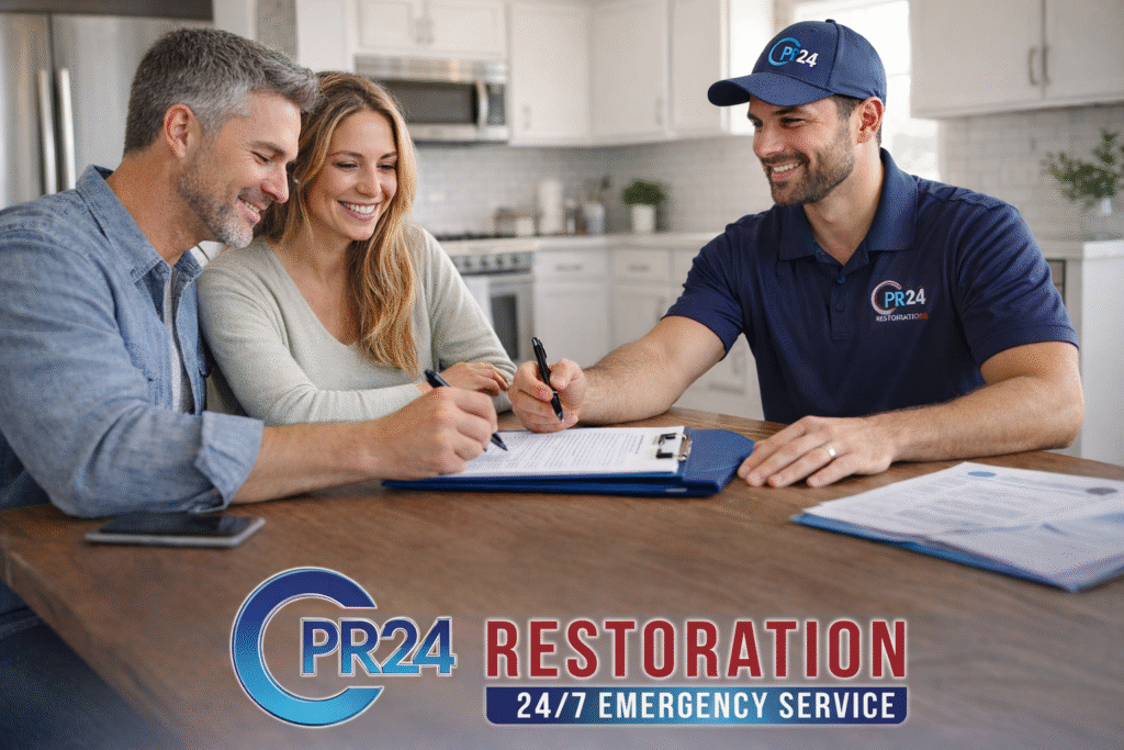 Water damage is the most common cause of property damage in Canada. Understanding how insurance and water damage are connected is important for homeowners. In fact, water-related damage made up the majority of insured extreme weather and catastrophic claims in 2023 alone. Water damage ranks as one of the problems that can get pricey for Canadian homeowners. So, does home insurance cover water damage? The answer depends on the source and circumstances of the damage. We’ll explain home insurance water damage coverage. We’ll cover what it includes, what it excludes, and extra coverage options. Your water damage coverage helps you protect your home and avoid unexpected costs when you understand it. What Does Home Insurance Cover for Water Damage? Most standard home insurance policies cover sudden and accidental water damage. Water damage accounts for 50% of home insurance claims costs. Understanding your coverage is significant. Burst Pipes and Plumbing Failures Home insurance water damage coverage typically has burst pipes and sudden plumbing failures. Your policy helps pay to repair or replace damaged drywall and ceiling. This applies if an upstairs pipe bursts. It also applies if water soaks the ceiling below. Coverage applies if a pipe cracks from ice during winter, despite taking reasonable precautions. But the policy won’t cover the damage source. You’ll receive coverage for the water-damaged ceiling and walls, but not for repairing or replacing the burst pipe itself. Also, poor maintenance excludes more damage. Homeowners insurance likely won’t pay for repairs if you fail to repair a leaky toilet and subsequent damage occurs. Appliance Leaks and Malfunctions Your policy covers accidental leaks from appliances like washing machines, dishwashers and water heaters. Insurance helps cover the damaged floor if your washing machine supply hose suddenly breaks and ruins your flooring. Coverage kicks in for the property damage if your water heater ruptures and drenches the surrounding area. The key difference stays the same: your policy covers water damage to floors, walls, and belongings. It won’t pay to replace the broken dishwasher or washing machine that caused the leak. We exclude damage that results from continuous leaking near a faucet or from unresolved maintenance issues. Roof Leaks from Covered Perils Your policy may help pay for repairs if water enters your home. This can happen when a covered peril damages your roof. Covered perils include storms, falling trees, or hail. Wind tearing off shingles or debris breaking through the roof during a storm qualifies for coverage. Roof leaks from aging shingles, wear and tear or poor maintenance fall outside standard coverage. The interior water damage might receive coverage in some cases, but repairing the deteriorated roof itself remains your responsibility. Types of Water Damage Covered by Homeowners Insurance Standard homeowners’ insurance policies categorize covered water damage into three primary types. Specific conditions in each category determine whether they approve your claim. Sudden and Accidental Water Events This coverage type is the foundation of standard water damage protection. Your policy covers sudden water escaping from plumbing, heating, and air conditioning systems. Hot water tanks fall under this protection as well. The coverage extends to domestic appliances, including dishwashers, washing machines, and refrigerator ice makers. The “sudden and accidental” requirement means the damage doesn’t happen over and over. Your dishwasher hose bursts and floods your kitchen? CPR24 Restoration is here for you 24/7! Water-damaged flooring and cabinets receive coverage, though the failed appliance itself doesn’t. Storm-Related Water Damage Heavy rainfall, hail, and ice dams that cause water to enter your home may receive coverage. Rain enters through a roof opening caused by wind or hail? We protect your ceilings, walls, and belongings. Water coming through an opening created suddenly and accidentally by another covered cause qualifies for compensation. Ice damming creates complications. Most providers think about ice damming as preventable and classify it as a maintenance issue. Regular gutter cleaning and proper roof ventilation help prevent backups and leaks. Heating and Sprinkler System Failures Heating system ruptures fall under standard coverage. Sprinkler leakage coverage protects against property damage caused by accidental discharge or leakage of water from automatic sprinkler systems. Most property insurance policies include this coverage. Which types of water damage does insurance not cover? Standard policies contain major gaps. You need to understand these exclusions to prevent claim denials and secure appropriate additional coverage. Flooding and Overland Water Home insurance policies exclude water damage from sources outside your home. This has heavy rainfall over the ground, overflowing rivers and lakes, melting snow, and rising groundwater. Coverage for basement flooding and overland water damage is optional. Coastal flooding from saltwater remains excluded even with optional endorsements in most cases. Insurers may not offer you coverage at all if you live in a high-risk flood area. Insurance companies determine premium amounts by flood risk level in your area for those eligible. Sewer Backup Without Additional Coverage Standard home insurance policies in Canada do not include coverage for sewer backup. Damage from sewer backups, sump pump failures, or clogged drains requires optional coverage. The cost ranges from CAD 209 to CAD 418 per year. Backup or overflow water from sump pumps, septic tanks, or weeping tiles remains uncovered without this endorsement. Gradual Leaks and Poor Maintenance Insurance covers sudden and accidental events, not slow leaks or long-term water damage from poor maintenance. We exclude continuous or repeated leakage from plumbing fixtures or appliances. Water d